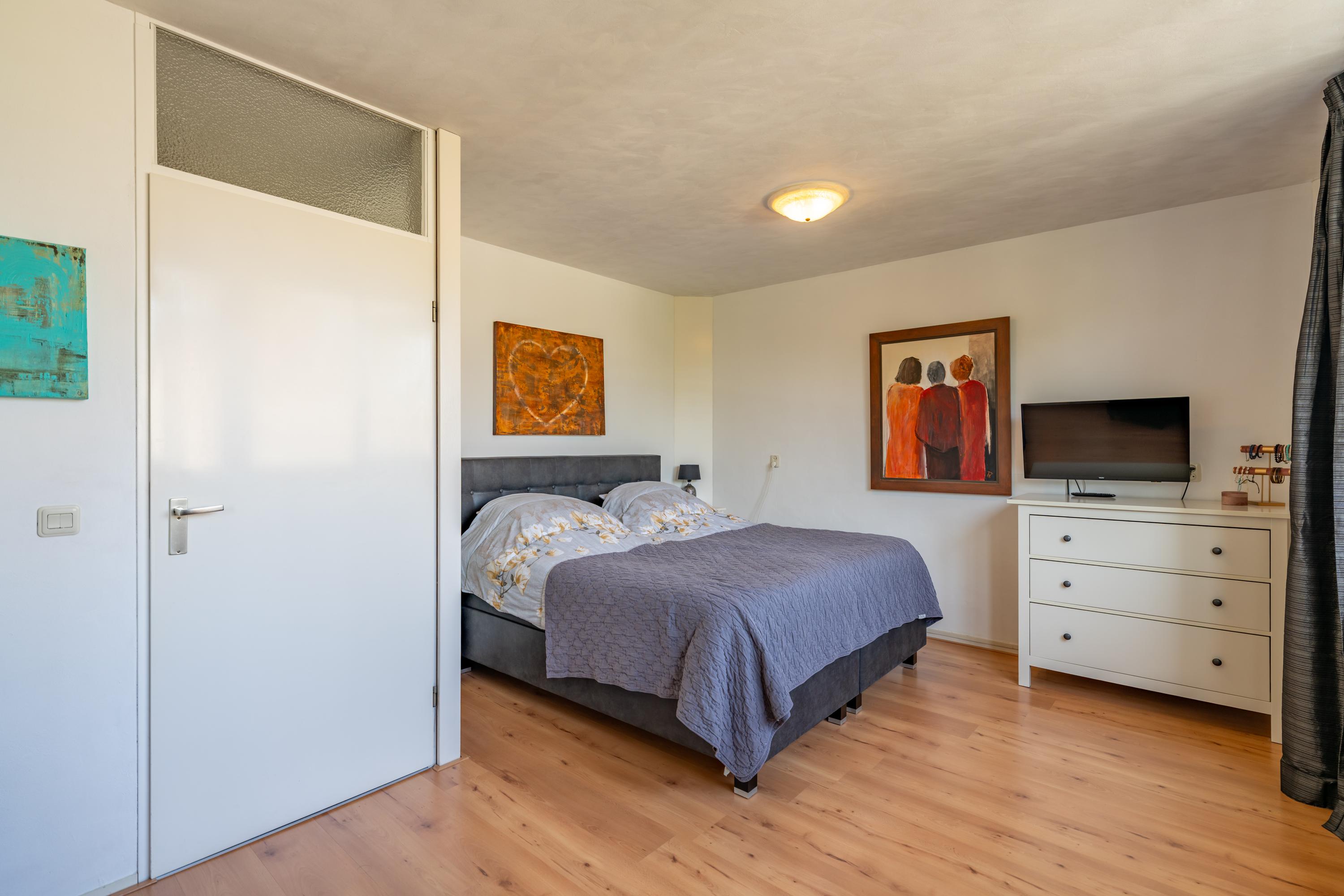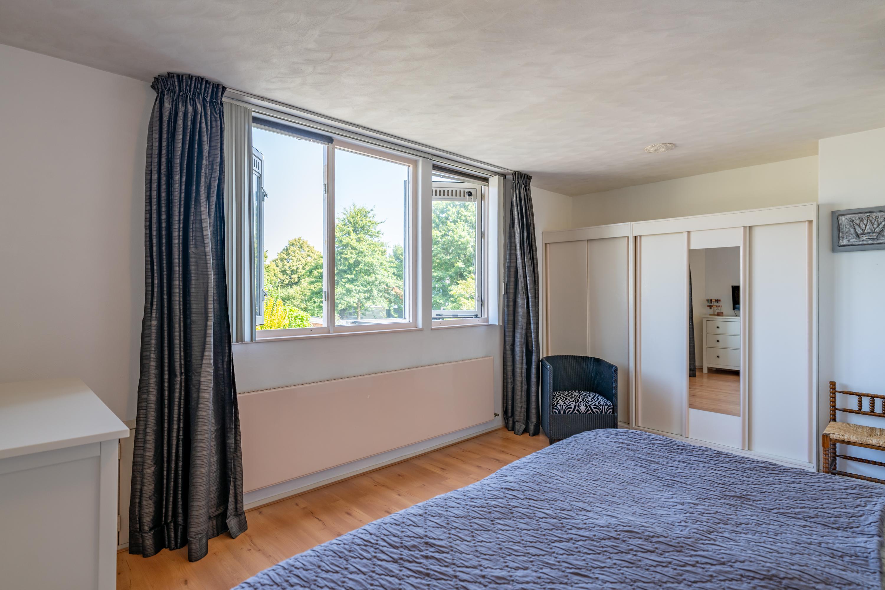 Royale slaapkamer met praktische inbouwkasten en een brede raampartij over de gehele kamerbreedte, wat zorgt voor veel lichtinval. Indien gewenst is deze ruimte eenvoudig op te splitsen in twee volwaardige slaapkamers. Daarnaast bevindt zich een