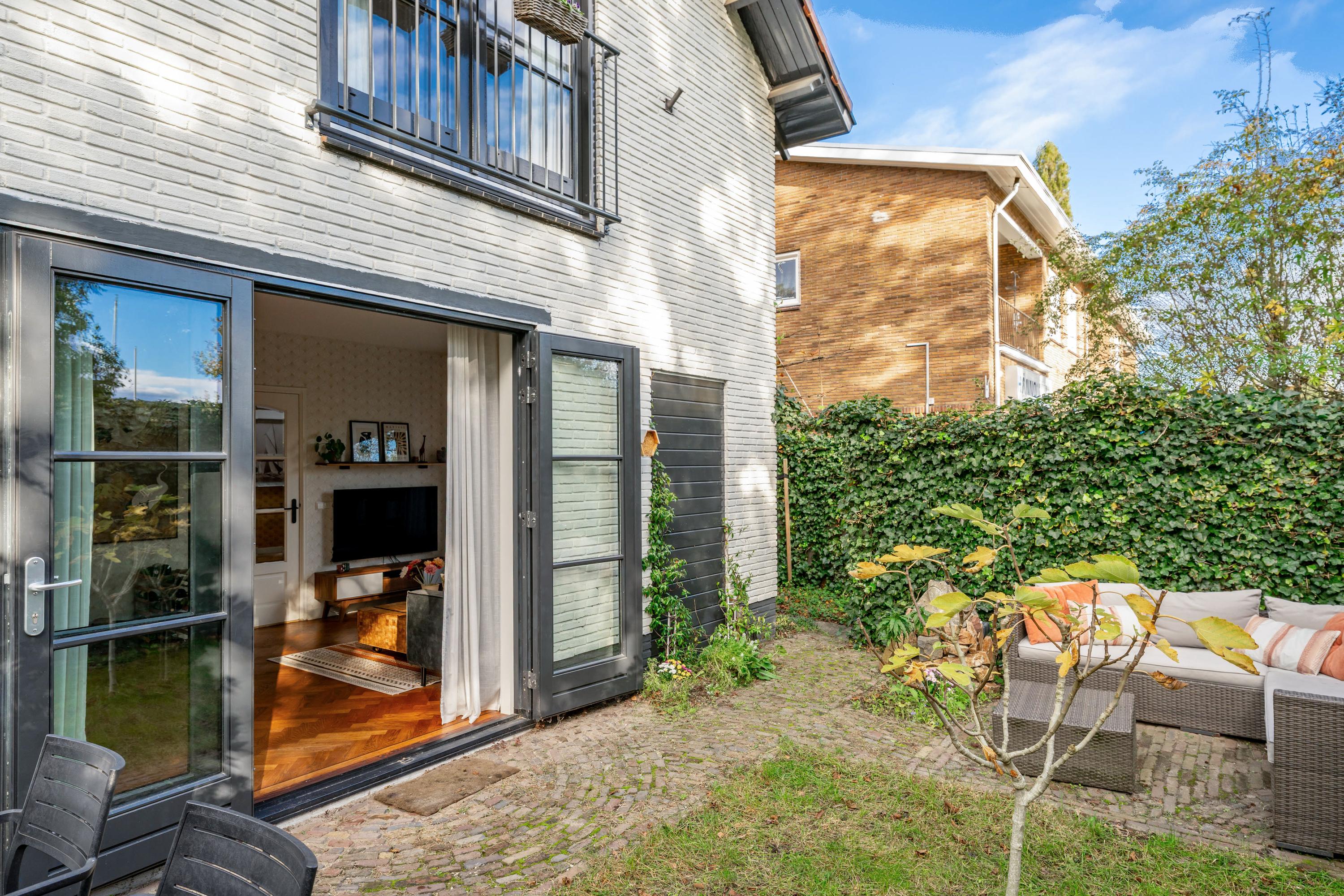 De woning is in 2020 volledig gerenoveerd en voldoet aan alle moderne eisen: gasloos, voorzien van 20 zonnepanelen en met een energiezuinig label A+. De ruime woonkeuken vormt het hart van het huis – licht, modern en met directe toegang tot de tuin en het Corversbos. Aan de voorzijde bevindt zich de gezellige woonkamer met parketvloer, haard en openslaande deuren naar de zonnige voortuin op het zuiden.