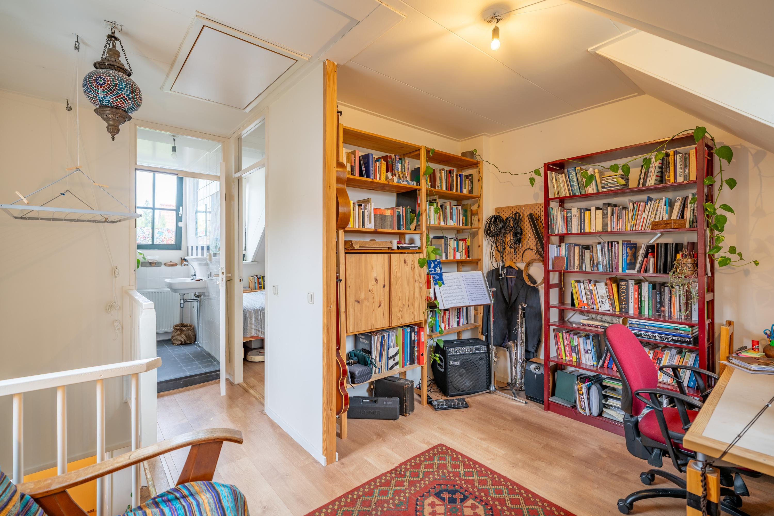 Eerste verdieping: Overloop met zijraam. Aan de voorzijde bevindt zich een grote, lichte open kamer met dakkapel. Aan de achterzijde ligt een afgesloten slaapkamer, eveneens met dakkapel. Daarnaast vind je hier de badkamer, voorzien van douche, wastafel en een dakkapel.