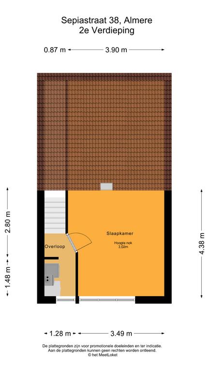 Tevens ruime, lichte slaapkamer met knieschot voor extra bergruimte.